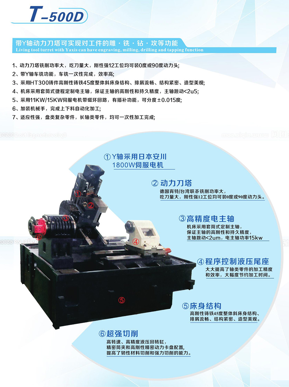 這是一款高速、智能、環保的臥式數控機床,該機床打破了原有的結構框架,重新應用有限元等先進的分析手段,對機床進行了布局結構的革新,確保機床具有高的加工精度和長期的精度保持性,加工工件一致性好。主軸總成和進給結構的結合,實現了高速性能,擴展的內部空間,比同類機床的適用范圍寬大了一倍以上。主軸采用高剛性主軸單元,導軌采用進口45型滾柱導軌,可實現產品的重切削和高精度加工。可以加裝動力刀塔,實現車、銑、鉆、攻等加工,實現自動化,節省人工成本。